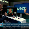 Ein TV mit einem freien HDMI-Eingang reicht aus. Die Verbindungs-Box stellt die Verbindung zum Internet her und führt die Funktionen aus.
